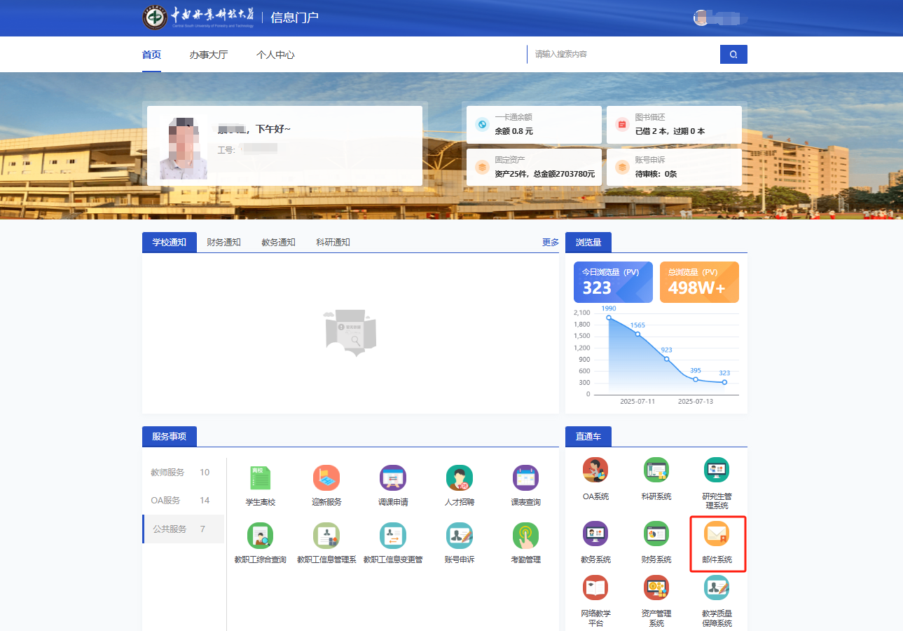 如图在登录信息门户后点击邮件系统,一键进入邮箱。