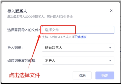 如图,进入新邮箱后,选择通讯录 → 个人通讯录 → + →导入联系人